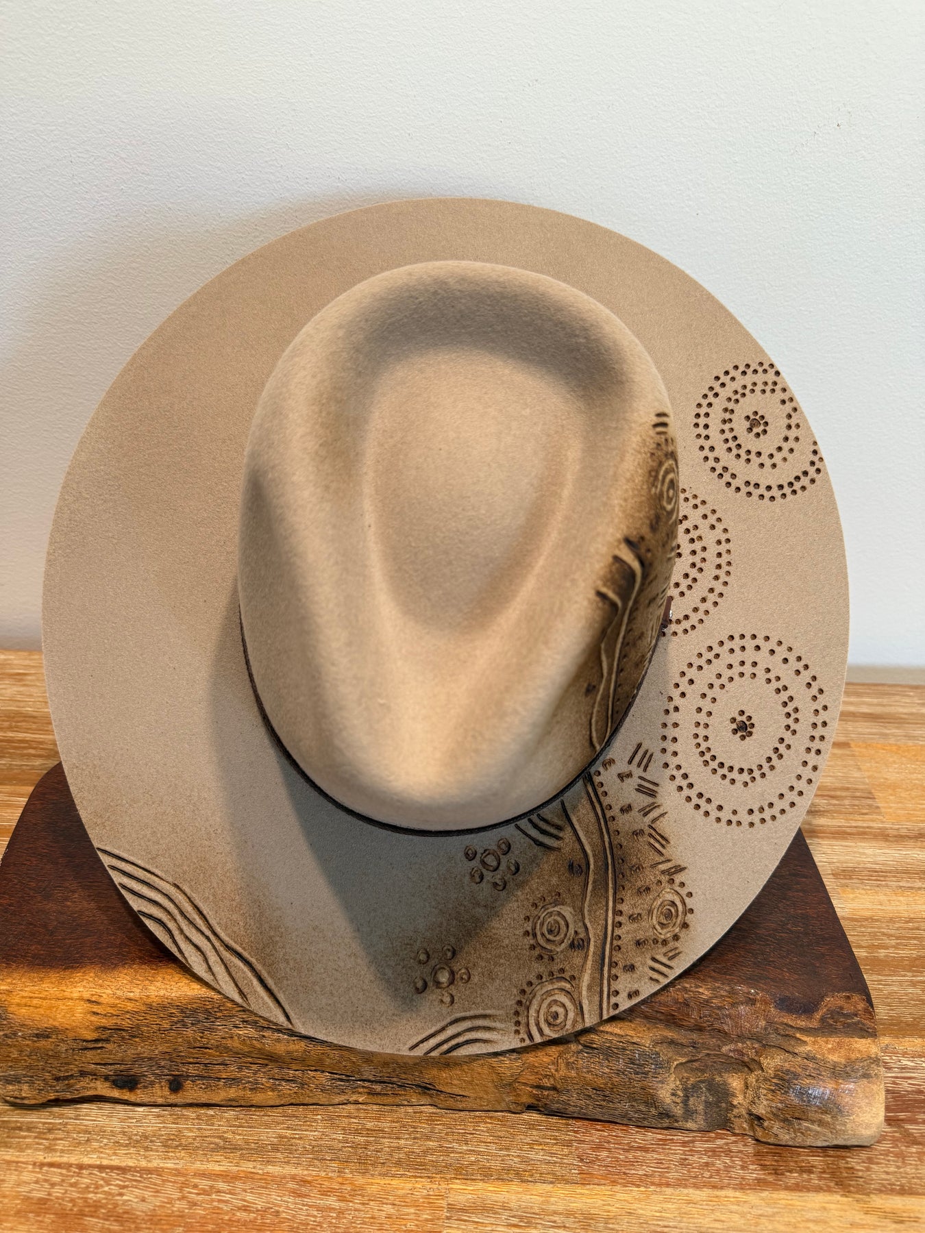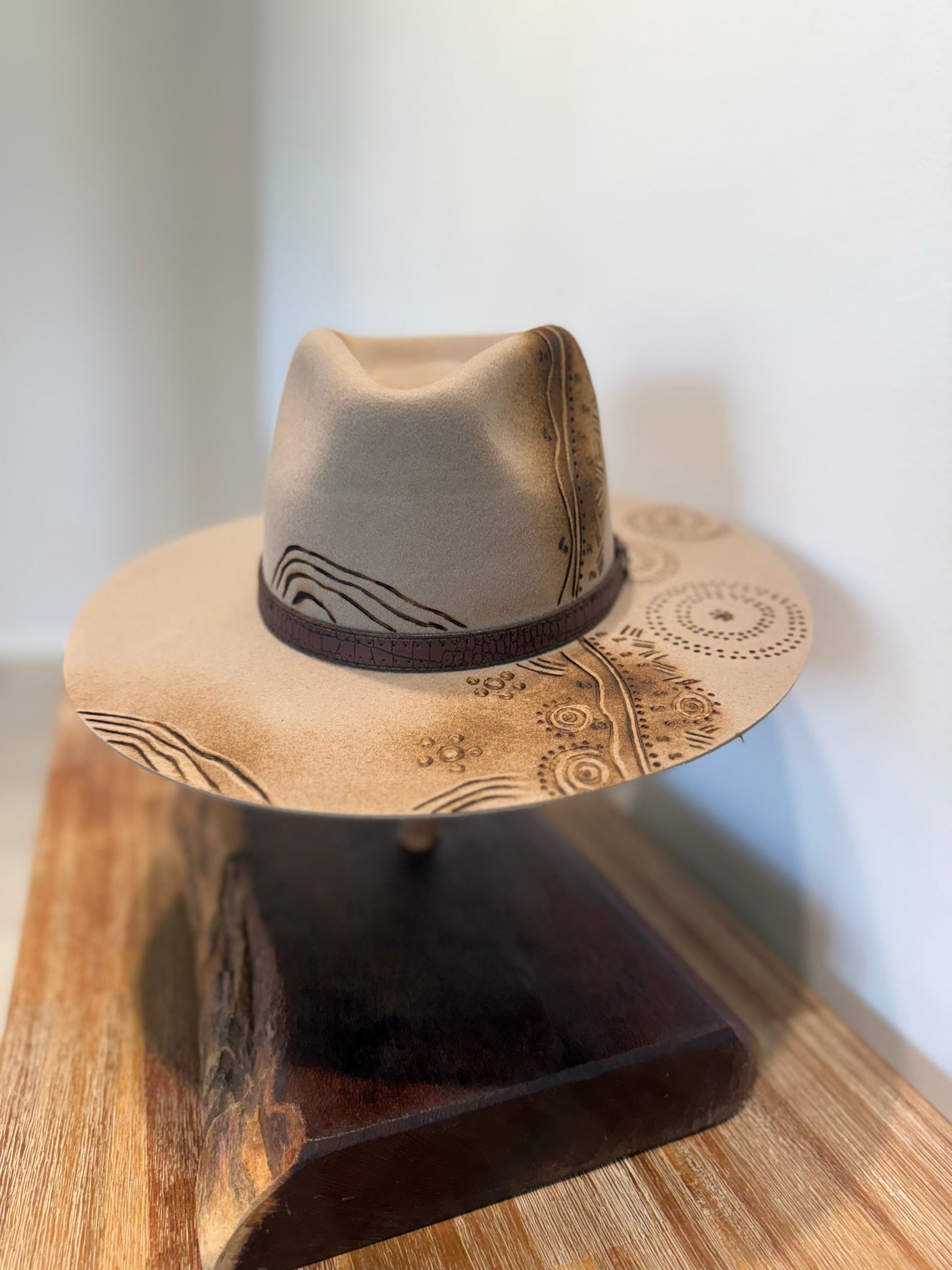 with free hand burning, adding a distinctive