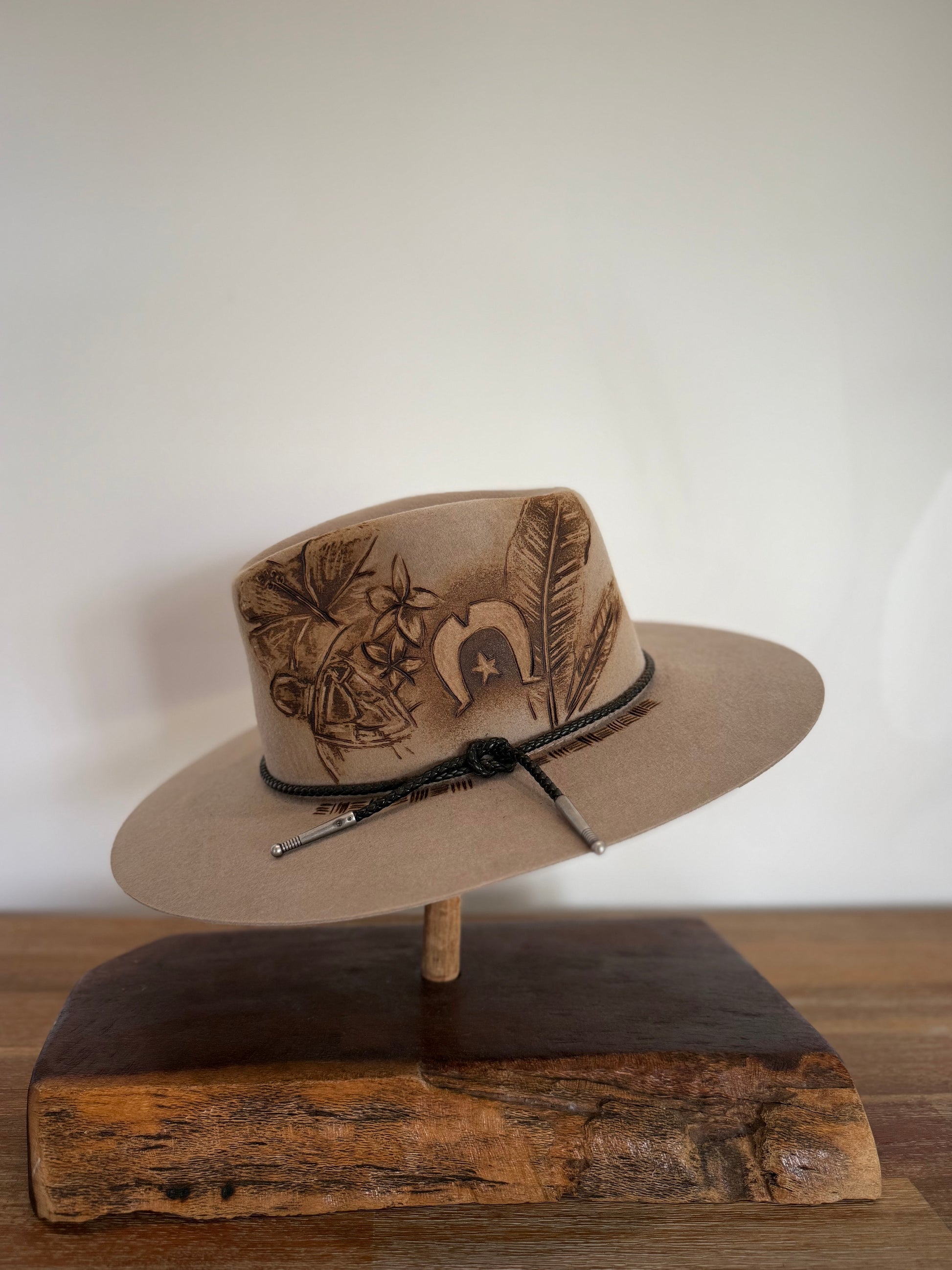 Please note: orders take up to **7 working days** to be made before sending, and will be completed in **order of preference**. Each design is **hand-burned**, so every hat will have its own unique details and slight variances — that’s the beauty of handmade art 🤎